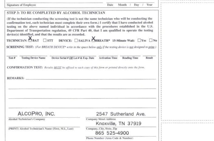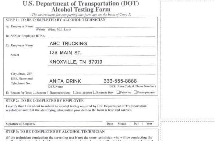 Imprinted DOT Alcohol Test Form